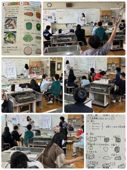 6年生の家庭科です。調理実習で「三色野菜炒め」を作ります。今日は、分担等を決めました。当日はみんなで協力してがんばりましょうね。