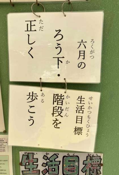 今月の生活目標は「廊下・階段を 正しく 歩こう」です。