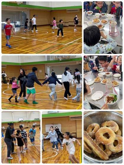 世界の様々な遊びで体を動かしました。1年生から9年生まで、楽しく遊ぶことができました。