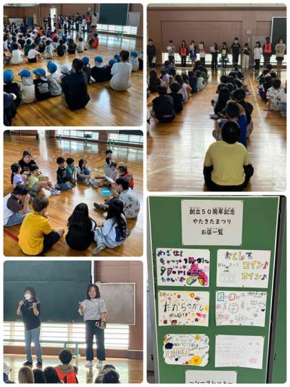 今日は、まちにまった「やたきたまつり」です。たてわり班でお店を回りました。どの学年のお店も楽しく遊べましたね。