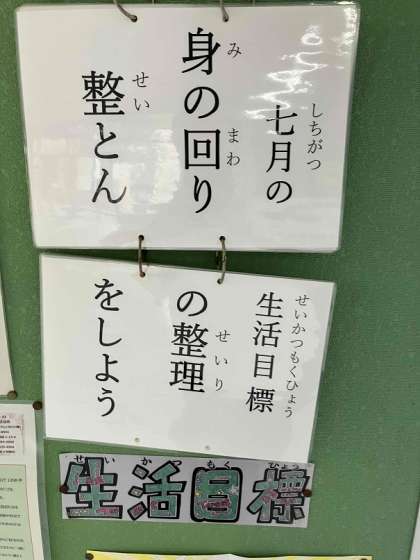 今月の生活目標は「身のまわりの整理整とんをしよう」です。