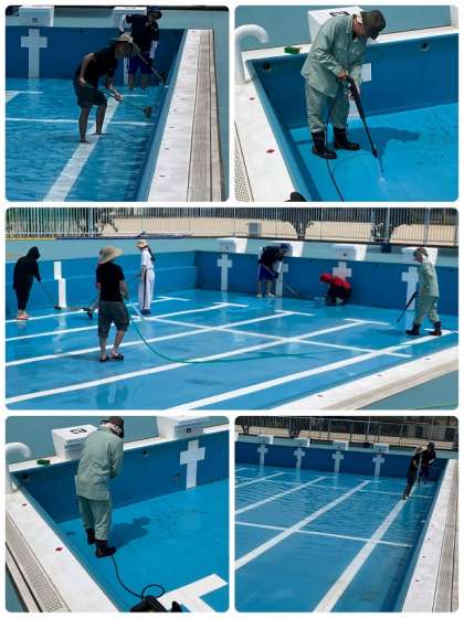 教職員でプール清掃・換水を行いました。プールの実施期間もあと少しです、しっかり練習して、泳力を伸ばしましょうね。