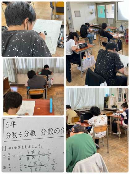 6年生の算数の時間です。算数の単元テストを行っていました。みんな最後まであきらめず、問題に挑戦しています。