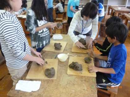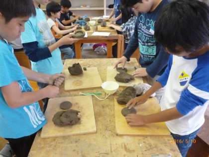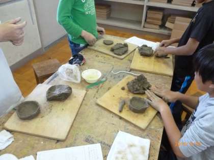 昨日、6年生が縄文土器を作りました。土器づくりの様子です。5月24日に野焼きをします。