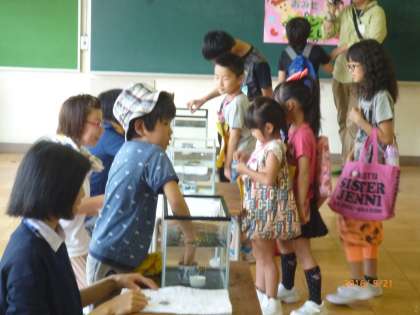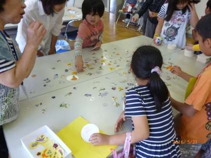 生涯学習ルームの「コースター作り」、2年生の「矢田北魚」、PTAの「コイン落とし」の様子です。