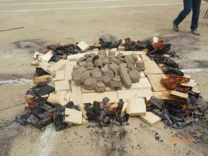周りから火をつけ、徐々に火の輪を小さくします。地面と周りの空気を暖めます。