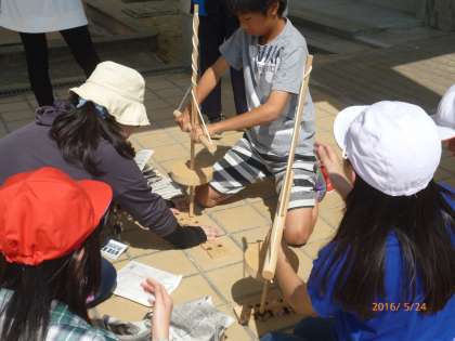 縄文土器の「野焼き」の始まりです。まずは、火起こしからです。それにしても、「野焼き」は、熱かった!暑さを忘れさせるような熱さでした。土器が、しっかり焼き上がりますように。ドキドキ。