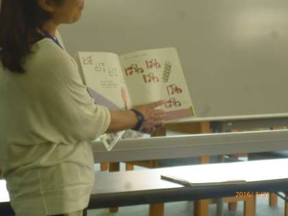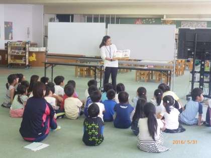 第2校時の図書館の様子です。1年生が絵本の読み聞かせをしてもらっていました。