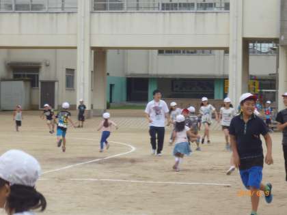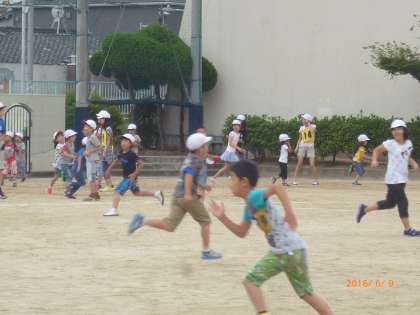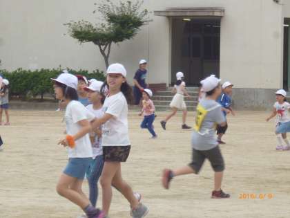 児童集会の様子です。みんなで「こおりおに」をしました。