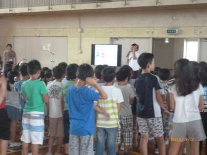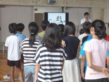 1学期最後の「Happy time 集会」の様子です。みんなで英語の学習をしました。