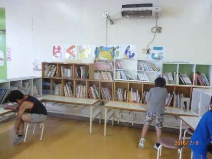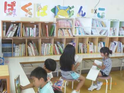 食堂には、食に関する本を置いています。早く食べ終われば、本を読むことができます。