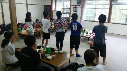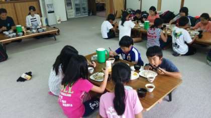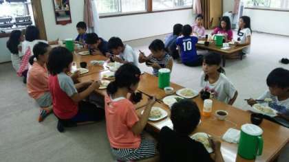 林間最後の食事?みんな元気です。午後1時頃に出発します。