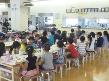 待ちに待った給食の始まりです。2学期最初の給食です。みんなよく食べていました。