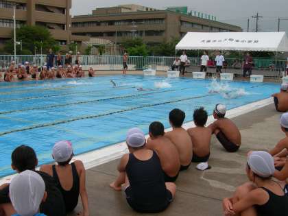 本日の午後、本校で矢田4小水泳交流会が実施されました。天気が少し心配されましたが、スムーズに進行することができました。一人ひとりが全力出し、子ども達のよき交流の場となりました。