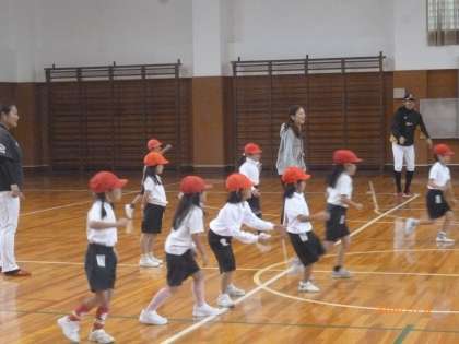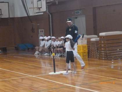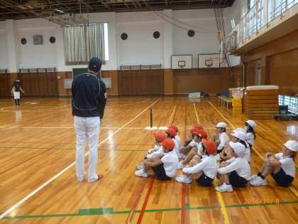 1・2年生が、プロ野球球団の方々から、野球の指導をしていただきました。