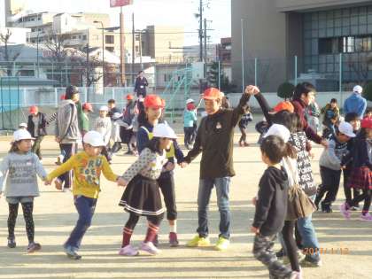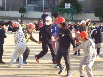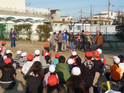 今日の児童集会では、ローリングゲームをしました。英語の指示にしたがって、たてわり班でゲームをしました。