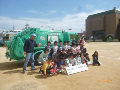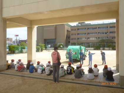 4年生がパッカー車体験をしました。地域のごみゼロ推進員の方も来てくださいました。