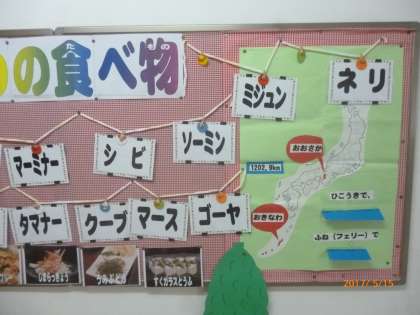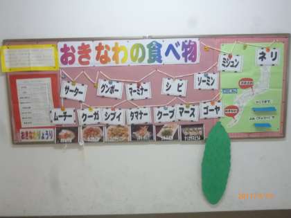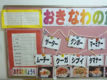食についての掲示です。「おきなわの食べ物」についての掲示です。