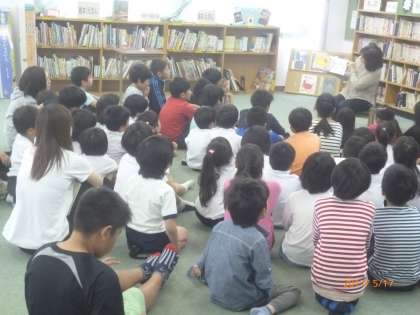 昨日、矢田北お話Boxのみなさんに、絵本の読み聞かせをしていただきました。