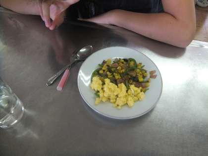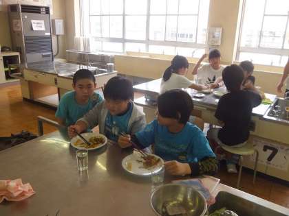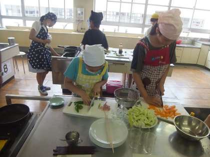 6年生の調理実習の様子です。野菜炒めを作りました。
