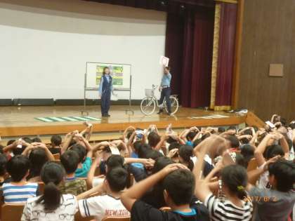 東住吉警察署の方から、安全な歩行・自転車の走行について、教えていただきました。