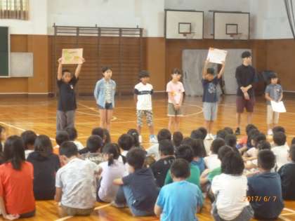 水曜日の朝の時間は、児童集会をしています。体育館でなわとびをしました。今週の金曜日には高学年のスポーツ集会、来週の火曜日には低学年のスポーツ集会があります。