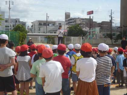 朝の全校朝会の様子です。校長先生のお話の後、先週の金曜日に行われた高学年スポーツ集会の表彰式、食中毒の予防についてのお話、熱中症についてのお話がありました。