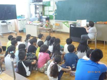 第2校時は低学年、第3校時には高学年に読み聞かせをしていただきました。