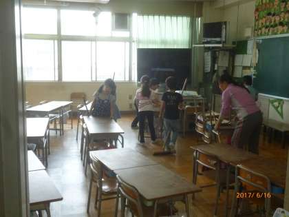 金曜日は、特別清掃の日です。力を合わせてお掃除しています。