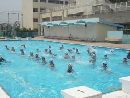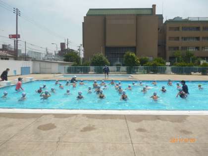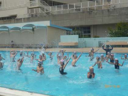 今日もとても暑いです。中学年のプールでの学習の様子です。子どもたちが、楽しそうに学習していました。