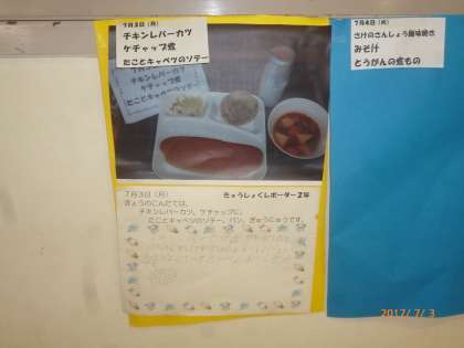 今日の給食です。暑さに負けないで、しっかりいただきましょう。