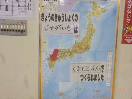 2年生よる給食レポートと今日の給食に出されたジャガイモの産地地図です。