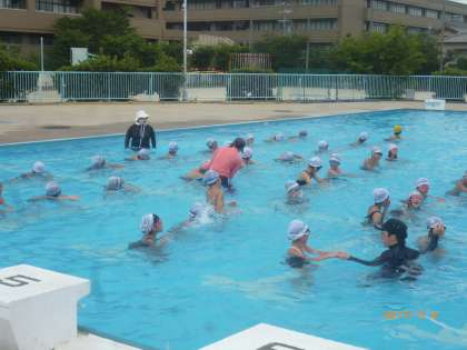 中学年の学習の様子です。天気の関係で今日が、まだ3回目のプール水泳です。