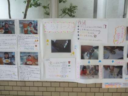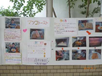 玄関の掲示です。給食委員会のみなさんが考えてくれた朝食です。