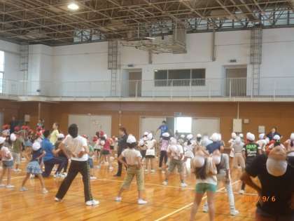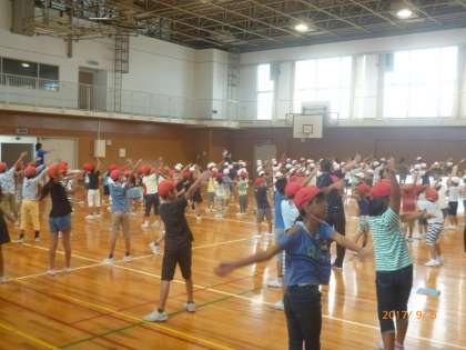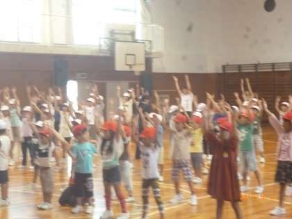 水曜日の朝の時間は、児童集会です。今日は、みんなでラジオ体操第1の練習をしました。