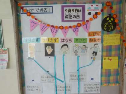 保健室横の掲示です。健康・安全には十分に気をつけてください。