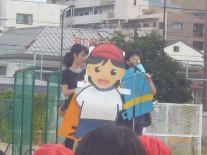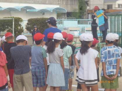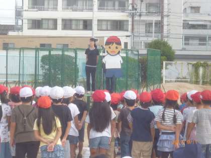 暑い日が続いています。全校朝会で、体に良い水分補給の方法について、矢田北けんさんからのお話がありました。