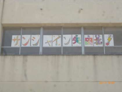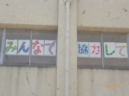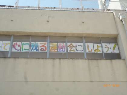 2階の渡り廊下に運動会のめあてが貼り出されました。