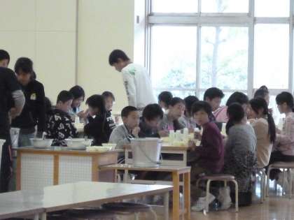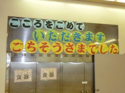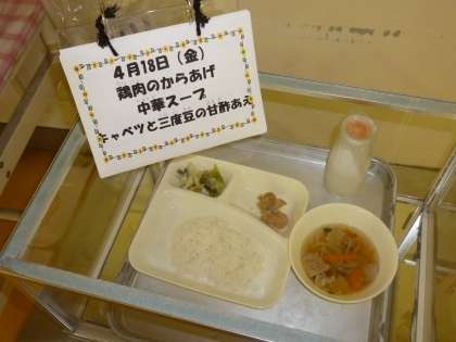 1・2年生が遠足だったため少し寂しかった食堂。今日の献立は、子どもの人気投票1位のからあげでした。(2位はカレー、3位はハンバーグ)