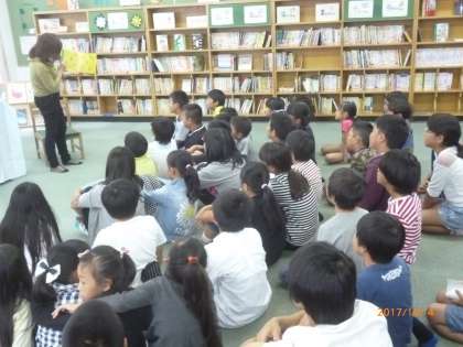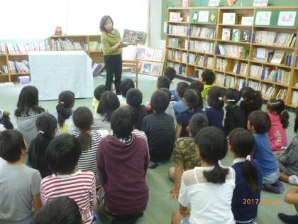 矢田北お話しBoxのみなさんによる絵本の読み聞かせの様子です。