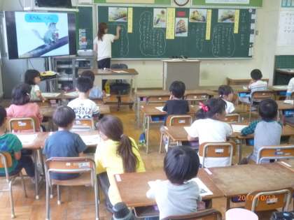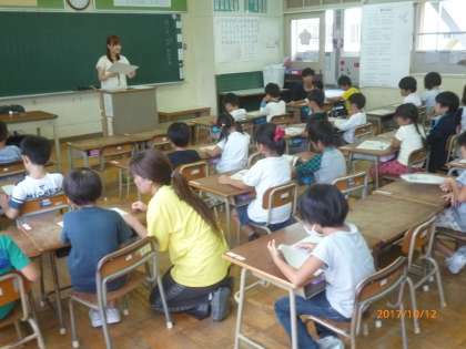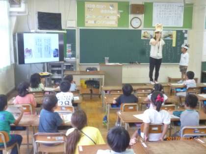 1年生の道徳の授業「はしの 上の おおかみ」の様子です。