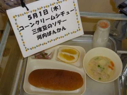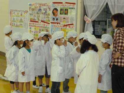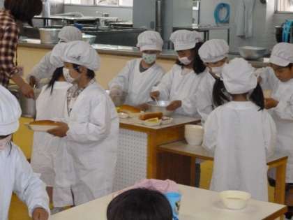 4月24日(木)の学習参観日に1年生は、給食参観をしていただきました。1年生もみんなでしっかりと準備することができています。