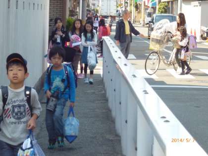 5月の生活目標は、「進んであいさつをしよう」です。先日、東住吉警察署の方が、玄関で子ども達の登校の様子を見守ってくださいました。「よく挨拶できていますね」と褒めていただきました。