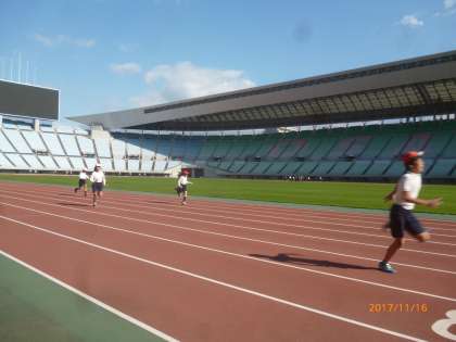 午前中は、50メートル走と100メートル走、希望者は800メートル走のタイムを測定しました。午後からは、サッカーやドッジビーなどをして交流を深めます。