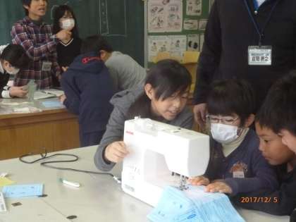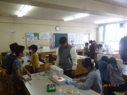 本日の第1校時、5年生がミシンを使っていました。午後からは、新聞社の見学に出かけます。