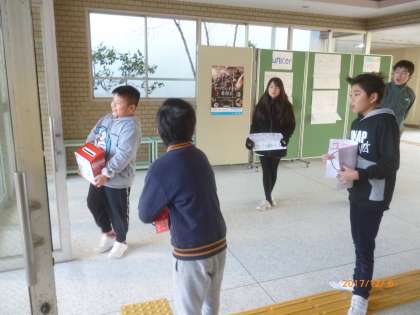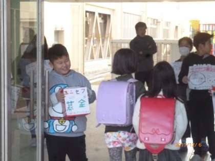 昨日・今日と児童会が登校時に募金活動を行いました。少しでも世界の子ども達の役に立てば嬉しいです。