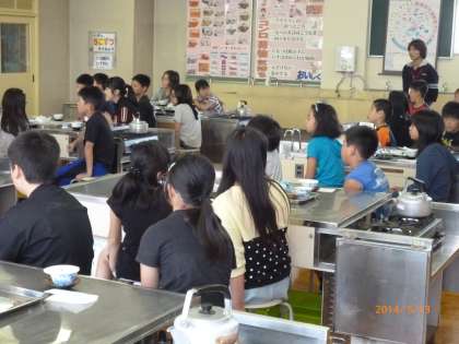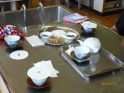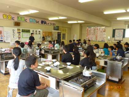 5年生の家庭科の授業風景です。沸かしたお湯で、おいしくお茶をいただけました。