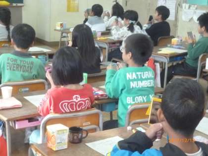 第5校時、2年生の教室で「歯みがき指導」がありました。磨き残しがないように、ていねいに磨けましたか。4年生は、フッ化物を塗布していただきます。