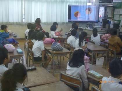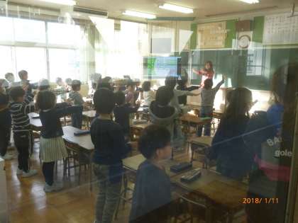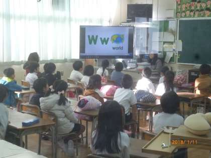 木曜日の朝の時間は「Happy time」です。英語の学習をしている様子です。
