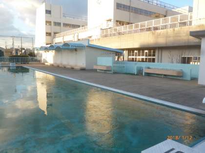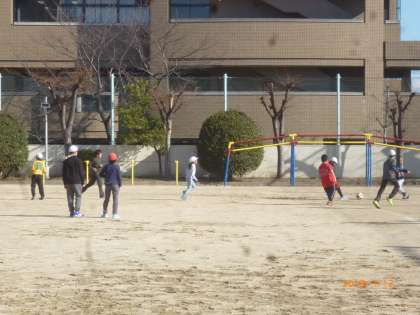 3学期始めの一週間が終わります。厳しい冷え込みが続いていますが、澄み渡った青空が広がっています。プールには氷が、運動場には子ども達が・・・寒いです。